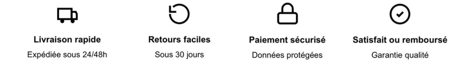 Nous voulons que vous aimiez votre achat. Si vous n’êtes pas entièrement satisfait, retournez ou échangez votre article dans les 30 jours suivant l’achat, sans frais.